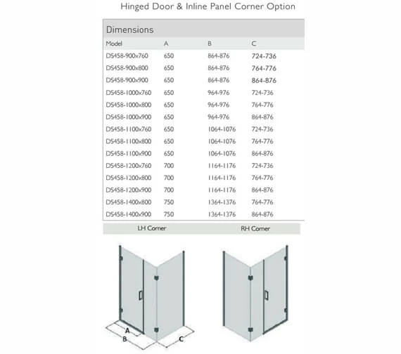 The Aqata Design DS458 Left-Hand Hinged Door and Inline Panel Corner Enclosure 900 x 760mm is manufactured for secure corner installation and is available for purchase in both left-hand and right-hand variations to choose from. A chic and versatile product from top to bottom, this product also comes in an array of glass finish options as well as coloured finish options and is suitable for placement within any modern or contemporary bathroom layout. A model that can include optional handles, towel rail, tray and/or a panel pack along with it; this unit also comes with an SB5 T steady bar as part of its form as a standard.