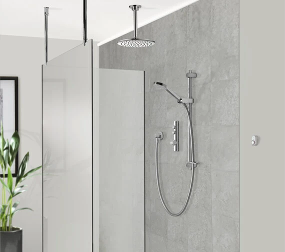 Aqualisa, a leading brand of bathroom products, now brings the iSystem Smart Concealed Digital Shower Kit With Ceiling Shower Head for your pleasurable showering sessions. The set, meticulously crafted from high-quality material, is strong and exceptionally durable, performing flawlessly for many years. The stunning-chrome finish set features digital diverter technology that allows switching between adjustable and drencher showerheads. The CE marked, sleek shower comes with WiFi, Mobile App, Google Home & Amazon Alexa enabled to allow you to control your shower remotely. Easy-glide temperature control, LED display and spray function, adjustable head are the other features.