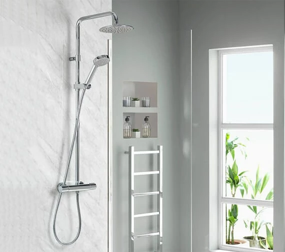 Aqualisa Midas 110 Thermostatic Shower Rigid Riser With Handset And Head gives a trendy look to your bathroom as it has a rigid riser, 1.5m hose, harmony handset, drencher head and shower column mixer valve. It is available in a chrome finish, giving the shower a classic view while increasing its durability. It is convenient to use with HP-Combi water systems. It has easy-to-clean handset nozzles features, making it highly recommended by users.