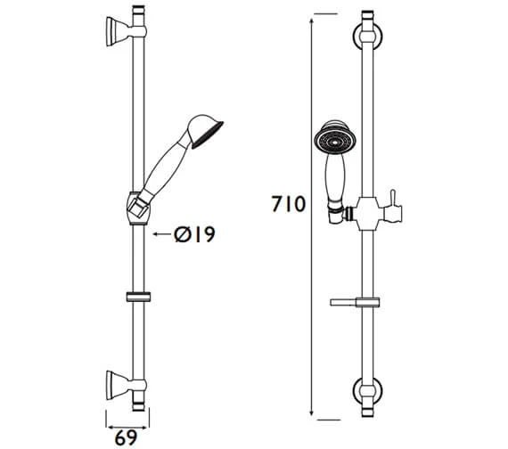 Bristan Chrome 710mm Height Slide Rail Kit