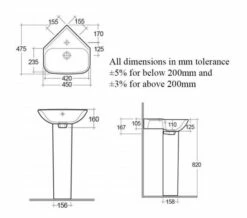Britton My Home 450mm Cloakroom Corner Basin With Full Pedestal is designed by the brand to combine supreme convenience and a high level of aesthetics. It is available for corner wall mounting and is supplied with 1 tap hole and overflow. Just right for compact settings, this corner basin is the perfect solution for enjoyable bathroom use. It comes with a generous vitreous china construction and is most suitable for home use, as well as in hotels and other commercial locations. Strong and rigid, it carries a guarantee of 25 years against any manufacturing defect.