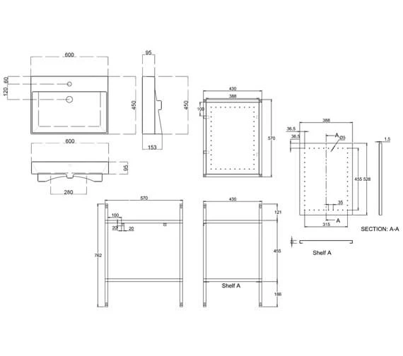 - Basin, Tap and waste shown in the image are not included and are sold separately.