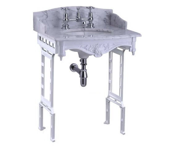 - Includes:- Carrara marble slab with basin, rear backsplash and two side splashbacks and Aluminium washstand.