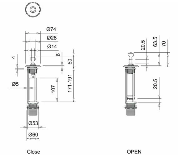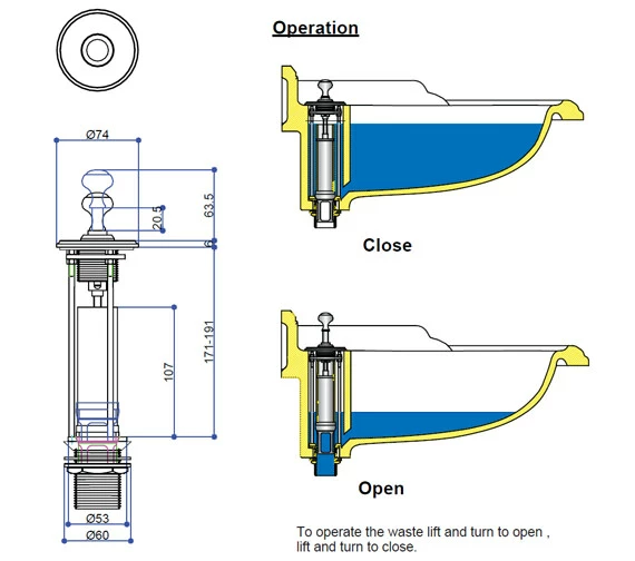 - Height with Standard Washstand: 890mm.