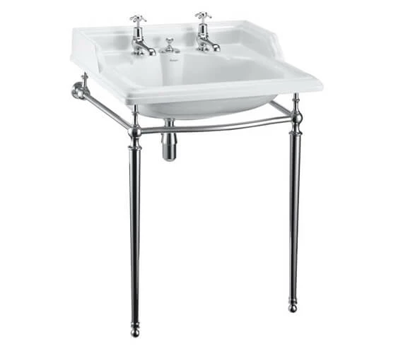 Add this Classic White 2TH Basin With Invisible Overflow And Wash Stand to your bathroom and instantly transform the look and feel of the room. This stunning design has been meticulously crafted to create a timeless aesthetic in your home. The chrome-finished wash stand displays elegant lines, as does the pristine white basin. This premium quality fixture is highly durable and backed by the manufacturer’s lifetime guarantee for your total peace of mind.
