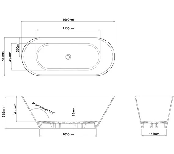Clearwater Sontuoso Clearstone Freestanding Bath 1690 X 700mm