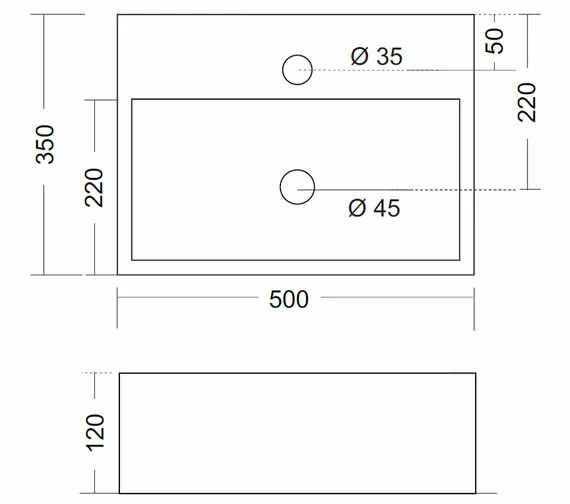 Crosswater Turin Wall Mounted 500mm Wide White Rectangular Basin