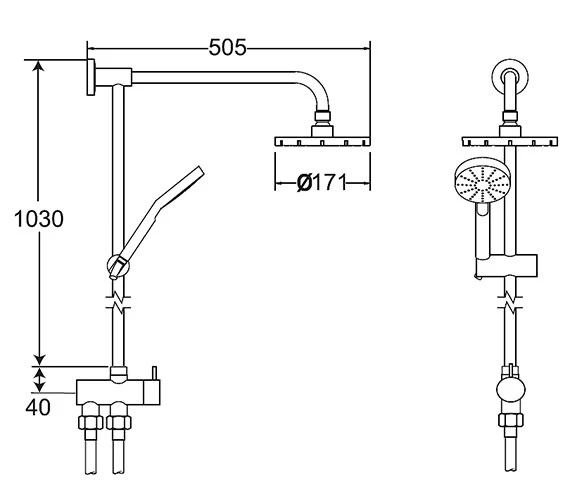 Deva Minimalist Chrome Rigid Riser Kit With Diverter And Handset – Kits09