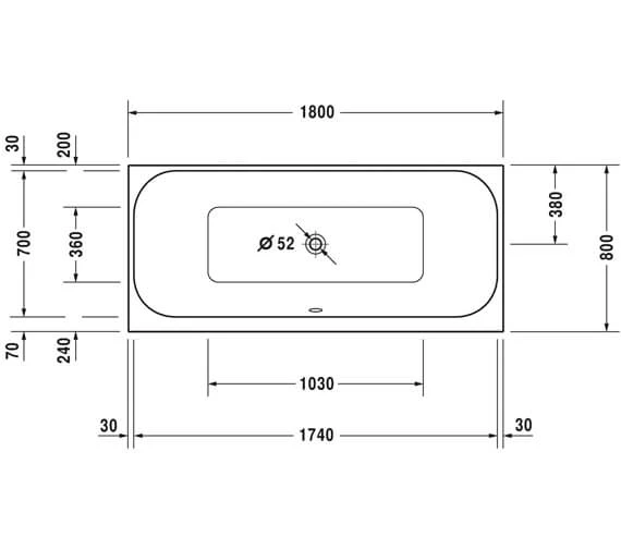 Duravit Happy D2 1800mm Combi System L Built-In Bath With Two Backrest Slopes-
