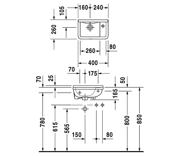 Duravit Starck 3 White Handrinse Basin With Overflow 400mm – 075400000