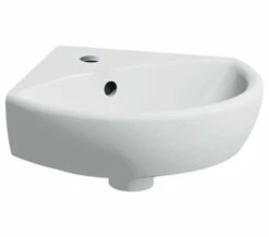 Geberit Selnova Single Tap Hole Corner Handrinse Basin is impressively designed that adds a contemporary look to your bathroom. This basin is available in different sizes as per your needs. It comes in an incredible white finish with a single central tap hole and overflow hole for a smooth and easy flow of water. It is made in a way that is preferable for corner installation. This basin manufactured using great quality vitreous china material