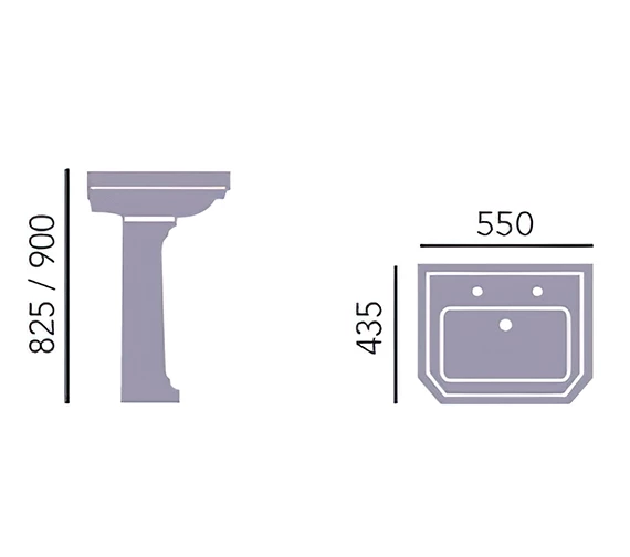 Heritage Granley Deco 550mm 2 Taphole Medium Basin