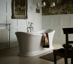 Luxury finds a whole new definition with the Orford Freestanding Bath. It is magnificently crafted by Heritage and yet sold at unbelievably affordable price at QS Supplies. This double-ended slipper bath is spacious enough to accommodate two bathers and is made using cast acrylic material for a long term use. Premium grade construction also allows the water to remain warmer than in the ordinary baths. It is supplied with a chrome plated clicker waste and an overflow.