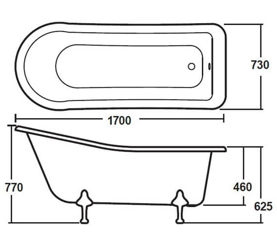 - โSingle-ended roll-top slipper bath with chrome-plated leg sets as standard
