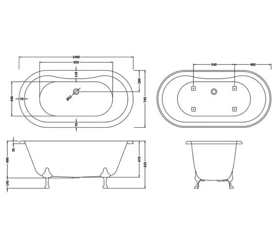 Hudson Reed Kingsbury Double Ended Freestanding Acrylic Bath White