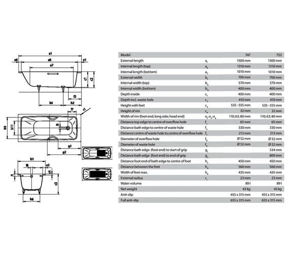 - Thirty years guarantee from Kaldewei against any manufacturing defects.