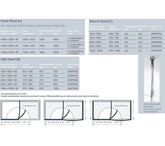 - This versatile Walk-In Enclosure – You can create a perfect showering area using a combination of front, side and return glass panels.