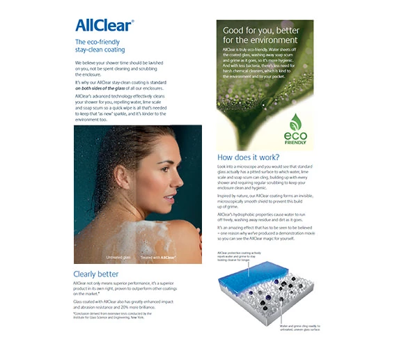 - Glass with advanced AllClear coating to keep your shower cleaner for longer.