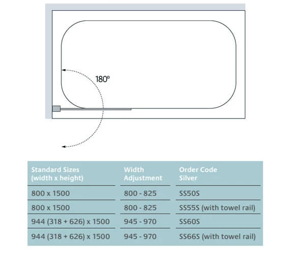 Heres the bath screen that is going to win you compliments! Tough and good-looking, it comes with a lifetime guarantee from Lakes and is simple to install with technical Tabs downloadable instructions. No wet floor or leakage; the screen is firmly fixed on the and enhanced by a silver-finished anodised aluminium frame. Customers like the adjustment for a watertight fit installation.