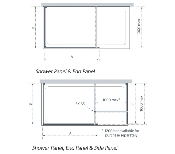 - End panel (B), side panel (C) and 90-degree bar joining kit are available separately [See Option].