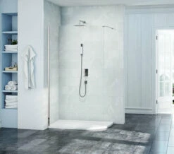 The Merlyn 8 Series 8mm Glass Curved Wet Room Panel is a beautifully crafted product that’s perfect for use in a wet room or showering area. Available in a variety of different widths to fit many compatible sized spaces, this unit comes in a minimalist, frame-free design that is easily reversible for both left-hand and right-hand installation configurations. Made from 8mm toughened safety glass and coated in a totally transparent Mershield Stayclear coating, this unit does not include the or waste is shown in the image, though options are available separately if required for proper installation of the product.