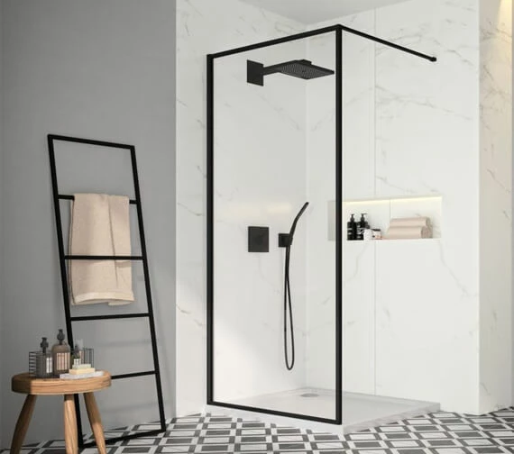 Merlyn Black Framed Showerwall Wetroom Panel will be a great focal point of attraction in any bathroom. The Anodised aluminium matte black finished panel is extremely durable thanks to the toughened safety clear glass construction. The finishing of the unit adds a classy and minimalist look that will perfectly blend with all styles. This unit is suited to recess or corner installation and includes a Bracing bar as standard. Looks best with designer shower head and .