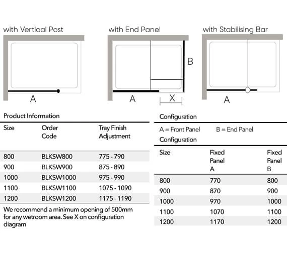 - We recommend a minimum opening of 500mm for any wetroom area.