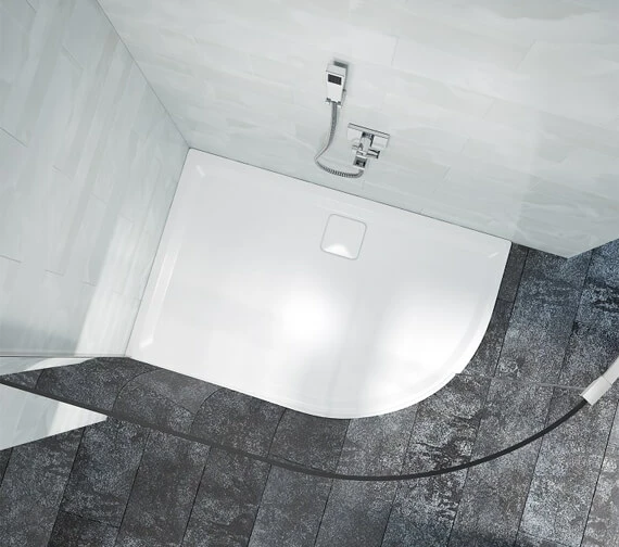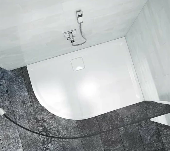 The Merlyn Level25 Offset Quadrant Tray with Waste – Left-Handed is an ultra-slim, 25mm thick, a low-level design that can be fitted on or level with the floor itself. A sleek, minimalist design that is ideal for use within any bathroom with decor that ranges from classic to modern in the overall layout. Constructed from an incredibly strong stone resin material, this unit also includes a bottom ABS layer that is capped in acrylic for a design that is certain to last through even daily use. Complete with a discreetly integrated waste cover, this product also comes with a 90mm fast flow waste.