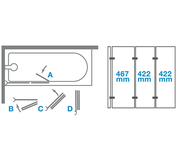 Merlyn Three Panel Folding Hinged Bath Screen 1400 X 1500mm