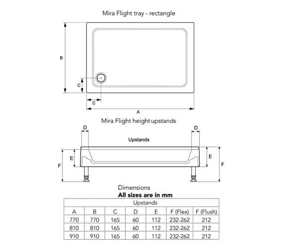 Mira Flight 4 Up-stand Square Shower Tray With Waste.