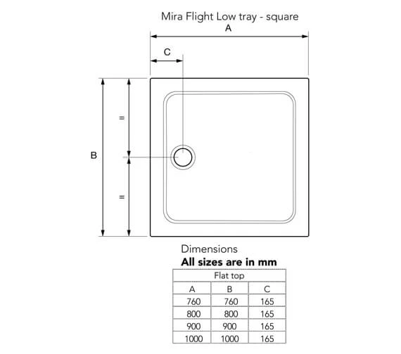 The Mira Flight Low Square Shower Tray is a low-profile unit with a smooth white surface made from strong ABS acrylic capped resin stone. Resistant to scratching, chipping and discolouration, the tray is supplied with Biocote technology, which reduces bacteria by up to 99.9%. The tray makes a highly functional but attractive addition to your shower and comes with a Vortex waste, which quickly disposes the water at a speed of 25-30 litres per minute through the waste hole of 90 millimetres. The tray measures 760 millimetres in length and width and 40 millimetres in height, and an optional riser kit featuring strong push-fit legs for solid floor applications can be added for a minimal cost.
