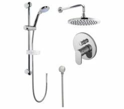 Nuie Binsey Round Manual Valve With Shower Kit And Fixed Head assures an exhilarating showering experience with the correct controls and fixtures supplied together. The utilitarian and extremely durable product fits a host of domestic & commercial settings and is designed to boost your showering experience. The set comes in chrome finish and is the perfect solution for quick, easy installation of your new shower system. It is now available at an unimaginatively low price from our online store. Suitable for a medium water pressure system, it needs at least 0.5 bar water pressure for smooth working.
