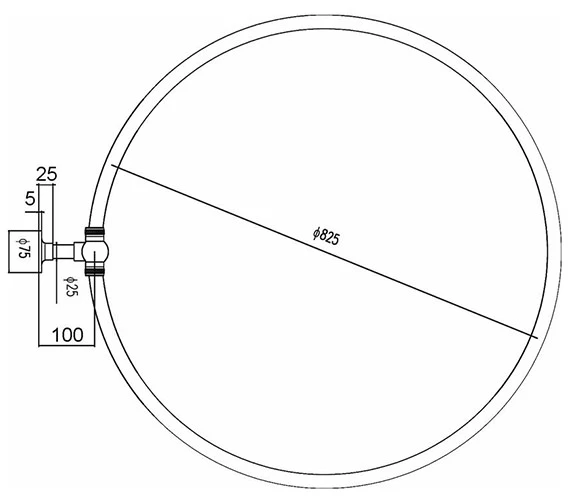 Nuie Round Shower Curtain Chrome Ring 825mm