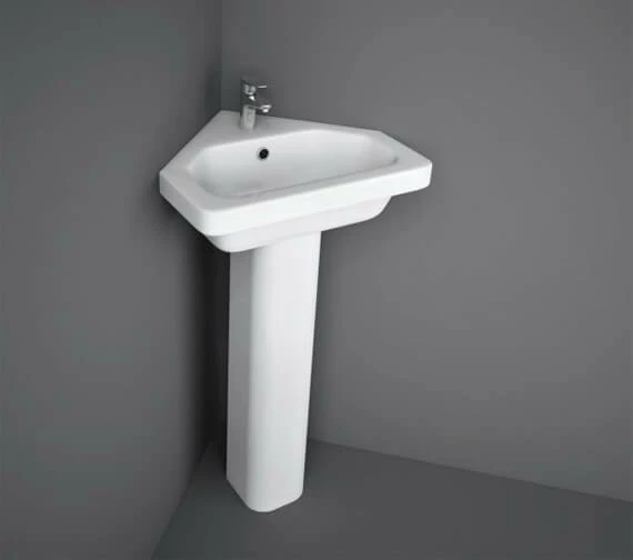 RAK Resort 450mm Wide 1 Tap Hole White Corner Basin And Full Pedestal