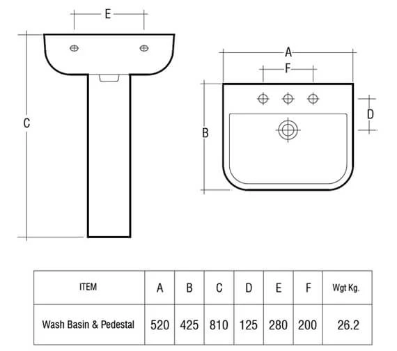 - Basin with semi and full pedestal available [See Option].