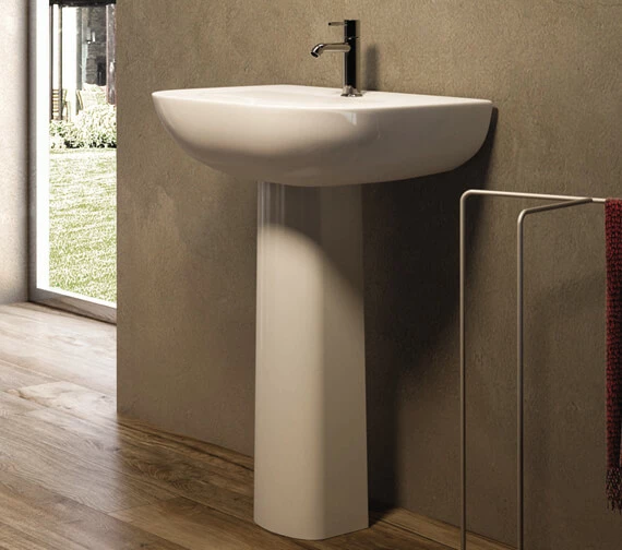 This cleverly designed stylish Tonique 1 Tap Hole Basin With Full Pedestal comes to you from RAK. The contemporary design makes a strong statement of clutter-free modern living. The basin will bring in a lot of joy with the D shape bowl design which is fabricated from the finest material for strength and durability. It comes with a smooth white surface that is easy to clean and maintain. Its quality is dependable and backed by RAK’s 25-years guarantee this is one washbasin that is sure to impress. The stylish , waste and pedestal can be added to your order at extra cost.