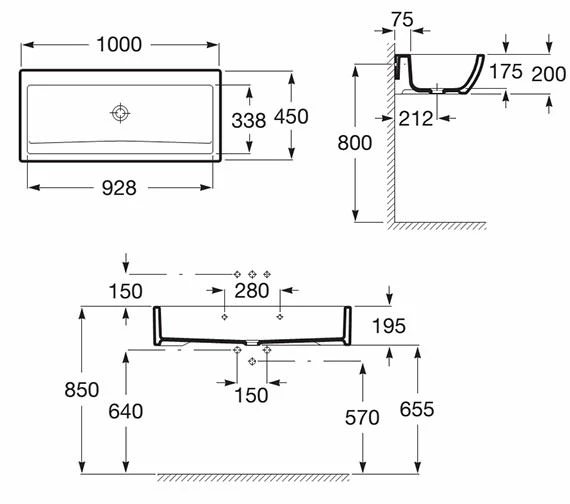 - Bowl Size: Width 928mm x Depth 338mm Height 175mm.
