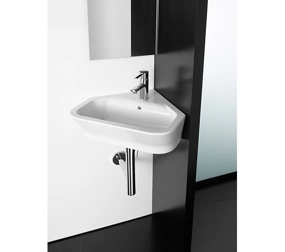 Get this captivating The Gap range corner basin from the house of Roca and simply make your bathroom or cloakroom effortlessly stylish. This attractive, ceramic beauty in pure white is designed for wall-hung installation for maximum use of space. Lines and curves work well in creating this triangular basin design with a single tap hole. Designed for use with slotted wastes, this vitreous china basin offers durability and a comfortable wash. The manufacturer also offers a 25-year guarantee against any manufacturing defects. Get it today.