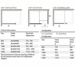 Crosswater Design 8 1950mm High Hinged Shower Door With Inline Panel