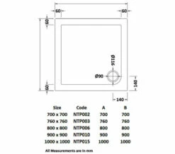 Just Trays JTFusion 4 Up-stand Square Shower Tray With Waste