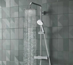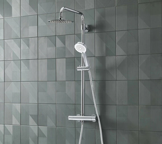 Tavistock Quantum Cool Touch Thermostatic Dual Function Bar Valve with Head and Handset has a sleek, modernistic appearance, making it an ideal choice for any modern showering area. The product is crafted from strong brass, while the chrome finish offers a cleaner look. The fixture works with a minimum recommended pressure of 1 bar and features an adjustable height rigid riser rail and multi-function shower handset. Thermostatic functionality and cool touch assure safety in use while. Easy to install, this product is backed by a 10-year guarantee covering all manufacturing defects.
