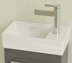 This unique basin, from Villeroy And Boch, introduced in the Avento range, is so pleasing that you will immediately take it home. It is made from the finest and most hard-wearing ceramic material in a brilliant rectangular design. The contemporary look is aesthetically appealing and practical. Perfectly proportioned, it has a central tap hole and a superb white finish that only accentuates the design.
